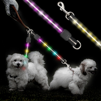 Custom Night Walking Safety IPX5 Waterproof Rechargeable Light up Dog Leash Extension Rope Double Connection LED Dog Lead